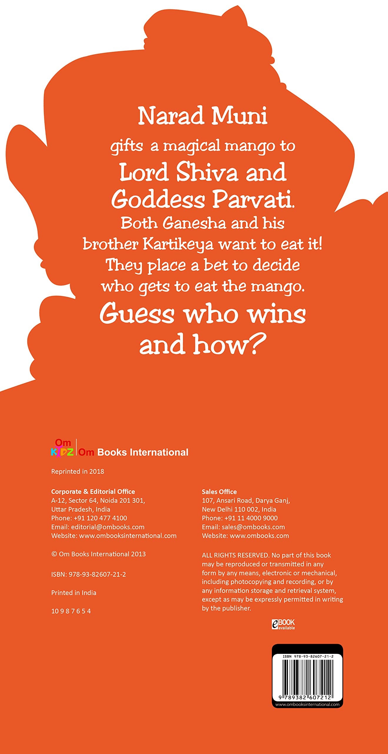 Drawing Narad Muni gifts a magical mango to Lord Shiva and goddess Parvati. Both Ganesha and his brother Kartikeya want to eat it! They place a bet to decide who gets to eat the mango. Guess who wins and how?.