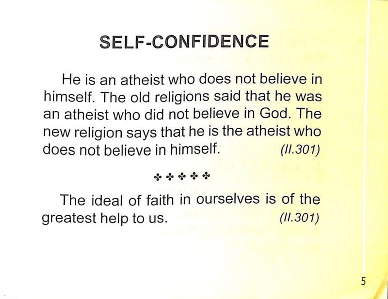 Virtues like self-confidence, strength of character, fearlessness, self-responsibility, positive thinking are very important for the youth so that they can set right goals in their lives and achieve those. At the same time, the youth needs to understand the importance of worship, meditation, divinity, universal religion etc., so that they tread on right path. This tiny book of 143 pages gives quotes from the literature on Swami Vivekananda on the above topics and many more. A must buy for youth and parents!!