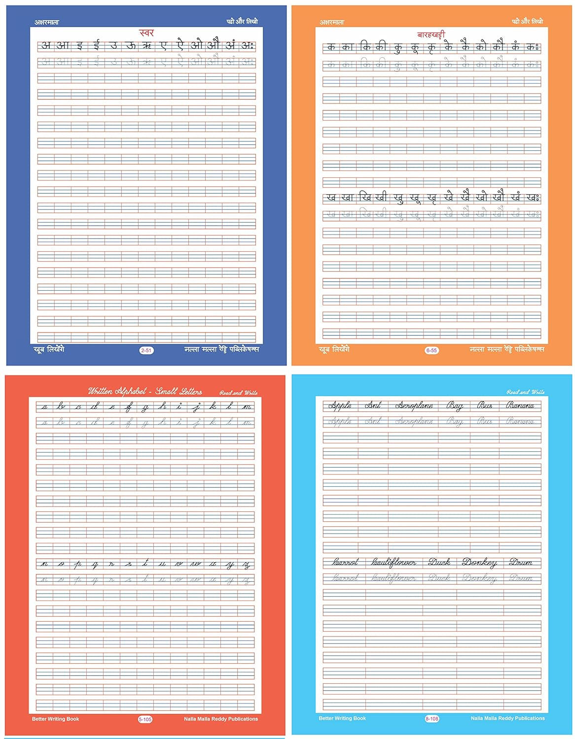 Kannada 3 in one Copywriting book in Kannada, Hindi and English consists of separate pages for each language to practice number of times with pencil using eraser for good hand writing as well learning words, sentences, sayings and proverbs enriching their minds, also useful in life. It starts with basic letters of the Alphabets and complete Varnamala for revision with practice on paper by the children between 3 to 6 years or more who learnt reading and writing the letters of Alphabets in the beginning of education either through thorough practice in the grooves of the slates or by otherwise.