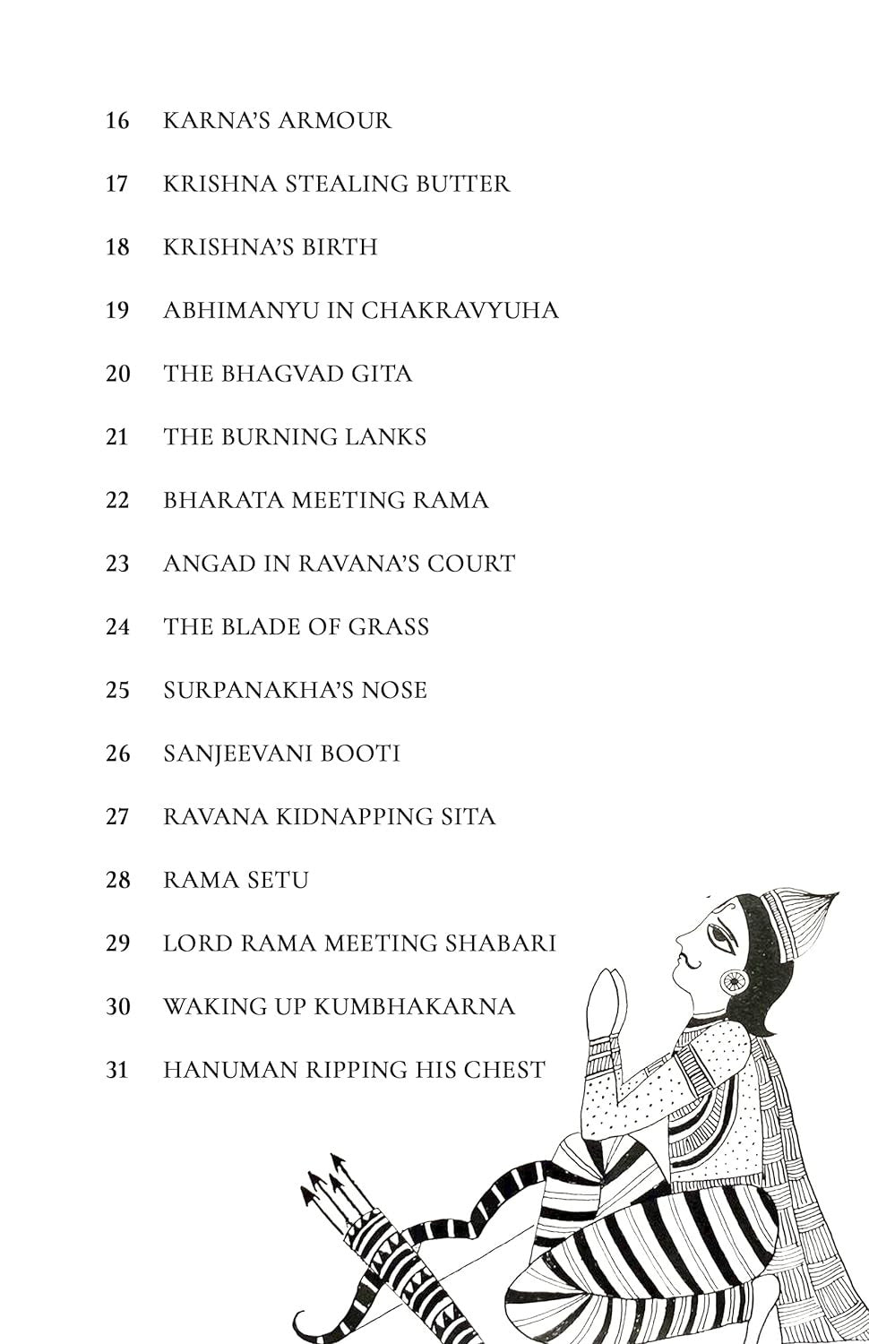 Stories from the Indian epics – Ramayana and Mahabharata – are as entertaining as they are enlightening. Though written thousands of years ago, they are relevant even today and hold a special charm for readers of all ages. Whether it be mischievous Krishna or valiant Rama, Kathayen holds together an enthralling retelling of thirty-one well-known episodes from these epics. Richly illustrated in a modern Madhubani art form, these stories re-interpret the age-old wisdom and share important life lessons, making it relevant for young parents and children.