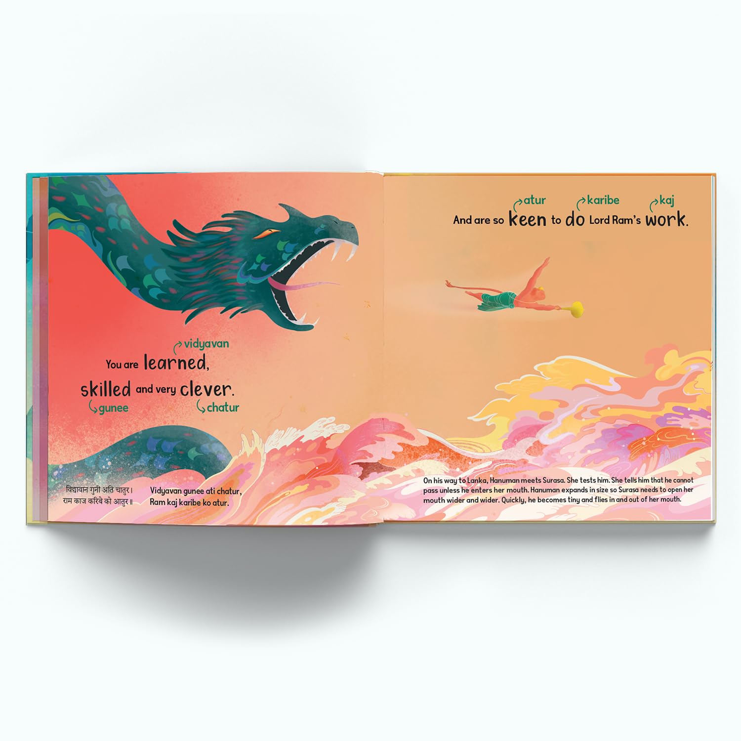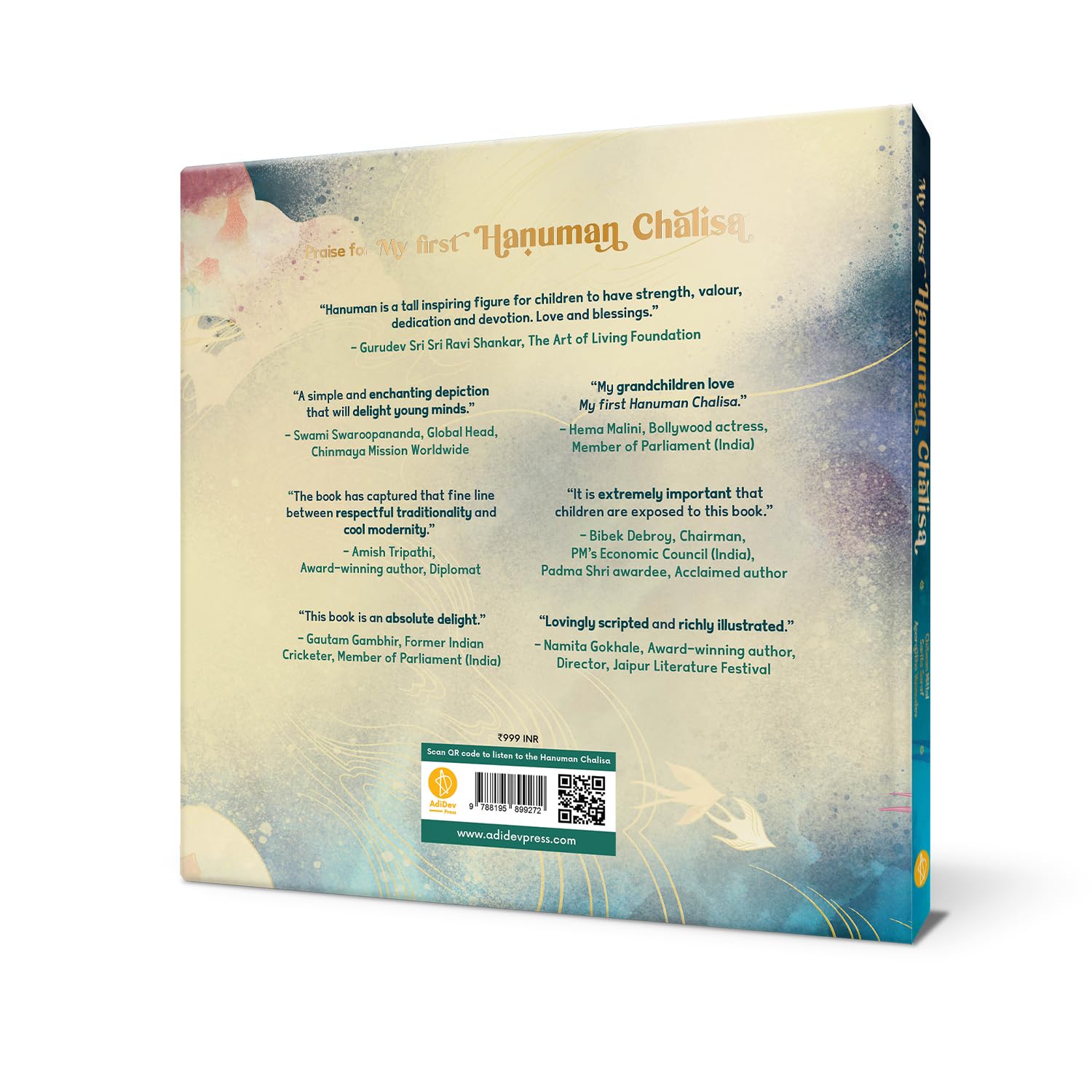 Finally, a Hanuman Chalisa translated that kids can read, understand and enjoy. This simple translation with (word meanings) accompanied by beautiful illustrations will make you and your child fall in love with Hanuman. “ This beautifully conceived edition of the Hanuman Chalisa for young readers unfamiliar with the original text is presented with joy, creativity and reverence. AdiDev Press has produced a magnificent bilingual volume, lovingly scripted and richly illustrated, which carries the lilting rhythm of the original verses by Tulsidas. It makes the vastly popular and deeply beloved Hanuman Chalisa accessible in style and spirit , and is inspirational in its commitment to cultural transmission." - Namita Gokhale, acclaimed author.