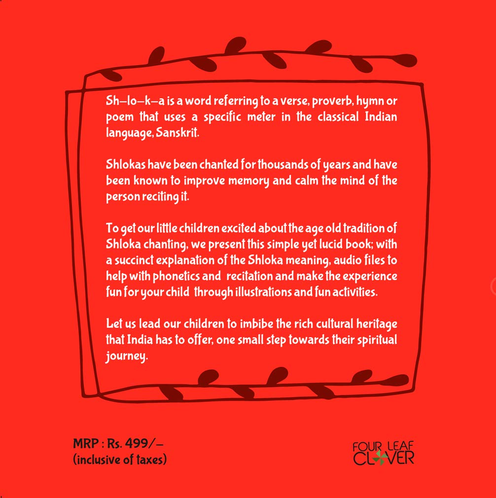 Back of the book writeup- sh-lo-k-a is a word referring to a verse, proverb, hymn or poem that uses a specific meter in the classical Indian language.