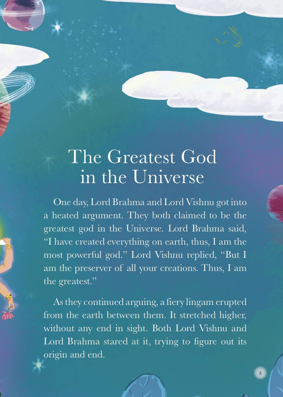 Lord Shiva is the strongest and the most enigmatic God in Hinduism. He is also known as ‘the destroyer’ and is one of the holy Trinity, which includes Lord Brahma ‘the creator’ and Lord Vishnu ‘the preserver’. it is believed that the destruction of evil leads to new cycles of creations and maintains the balance in the world. Shiva tales is a collection of inspiring stories of Lord Shiva’s wisdom and power. Anecdotes of the battles he fought to restore peace on Earth; teaching vain Ravana a lesson; and many more stories of Shiva’s greatness are retold through simple, lucid words and vivid illustrations, making this book an absolutely delightful read!.